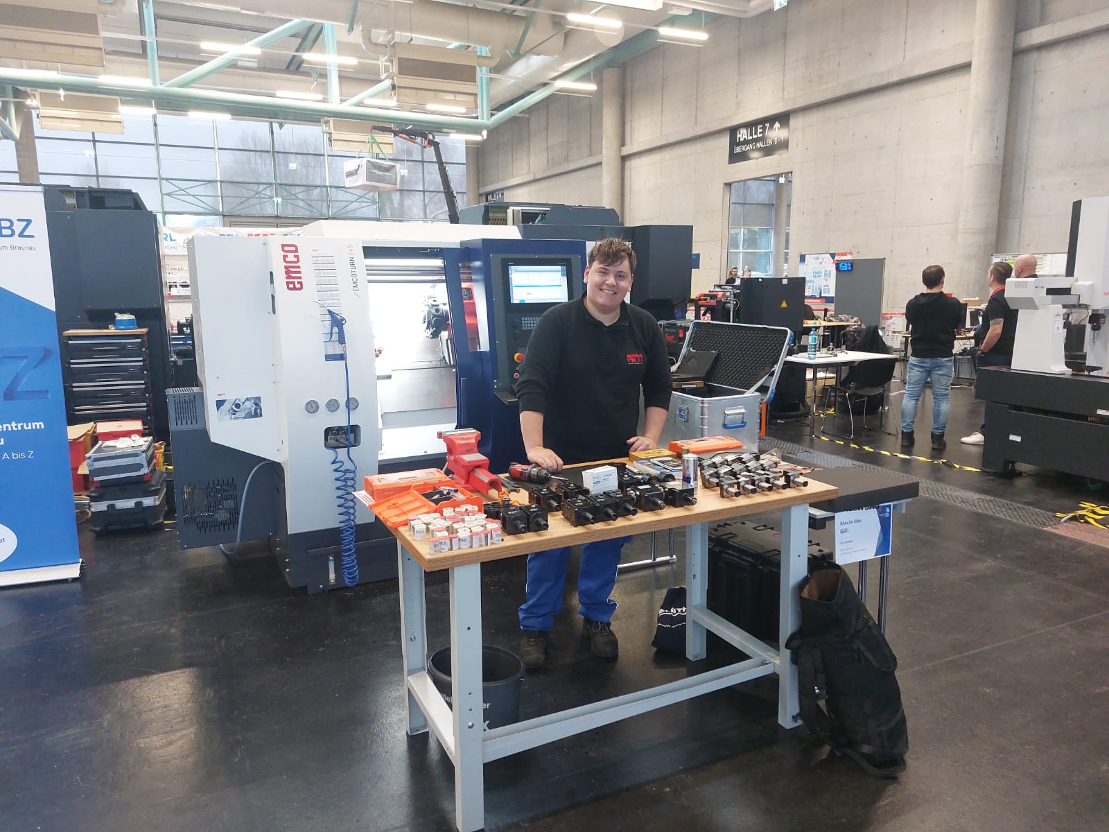 Maximilian (Lehrling Werkzeugbautechnik) nahm vom 20. bis 23. November 2025 an den AustrianSkills in Salzburg teil – und darf sich über die Silbermedaille im CNC Drehen freuen. Drei Tage lang stellte er sein Können unter Beweis, indem er eine Ratsche als Werkstück fertigte.